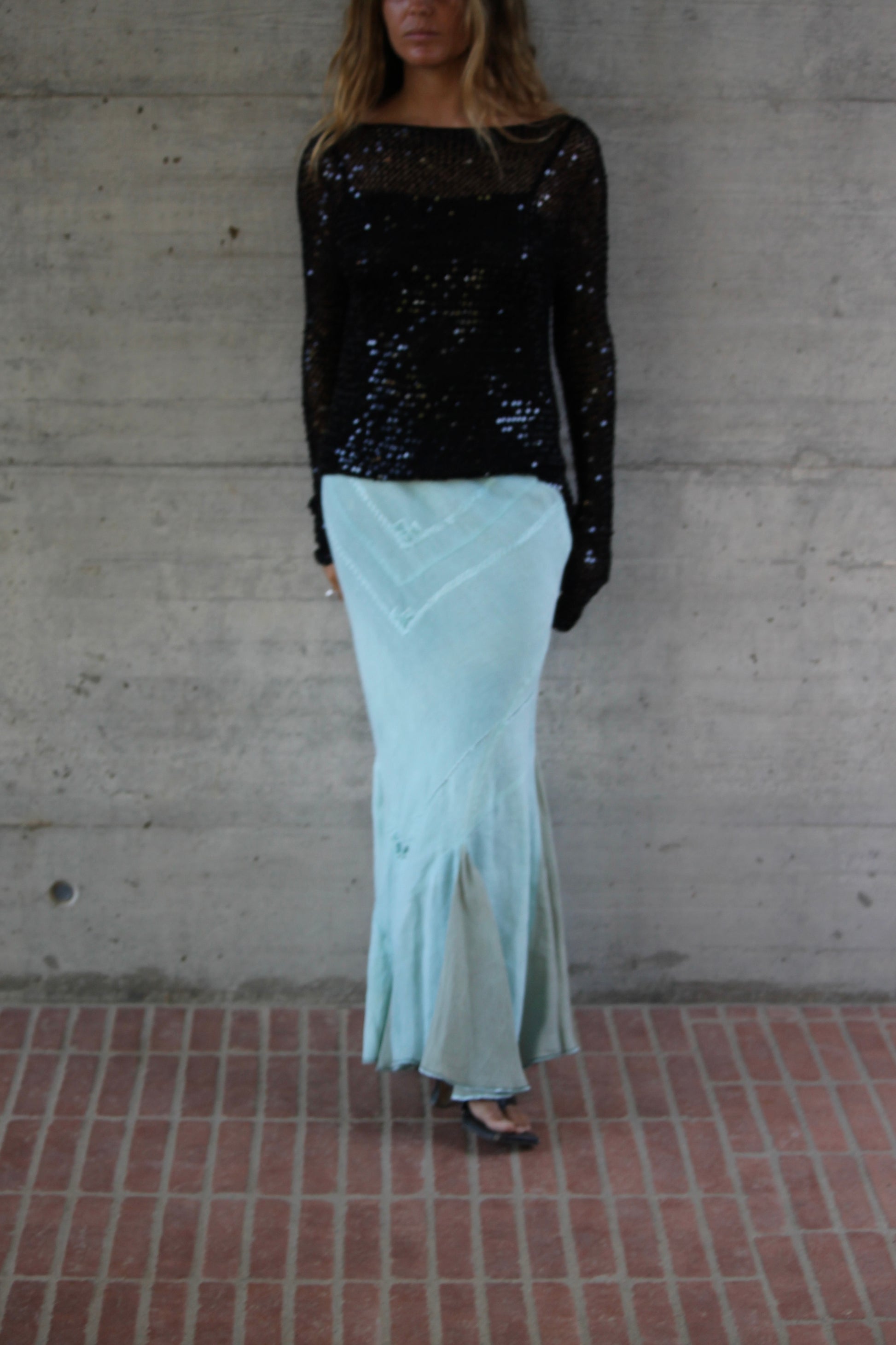 Chine Belgium flounced maxi skirt